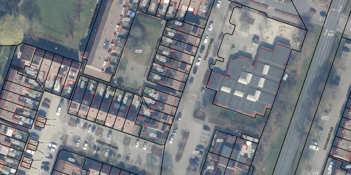 Hoornstraat 14 is gelegen op kadastraal perceel AMR04K5346. Deze kadastrale aanduiding is uniek en wordt gebruikt door het Kadaster om eigendomsrechten en andere zakelijke rechten vast te leggen. Het perceel maakt onderdeel uit van de kadastrale gemeente Almere.
