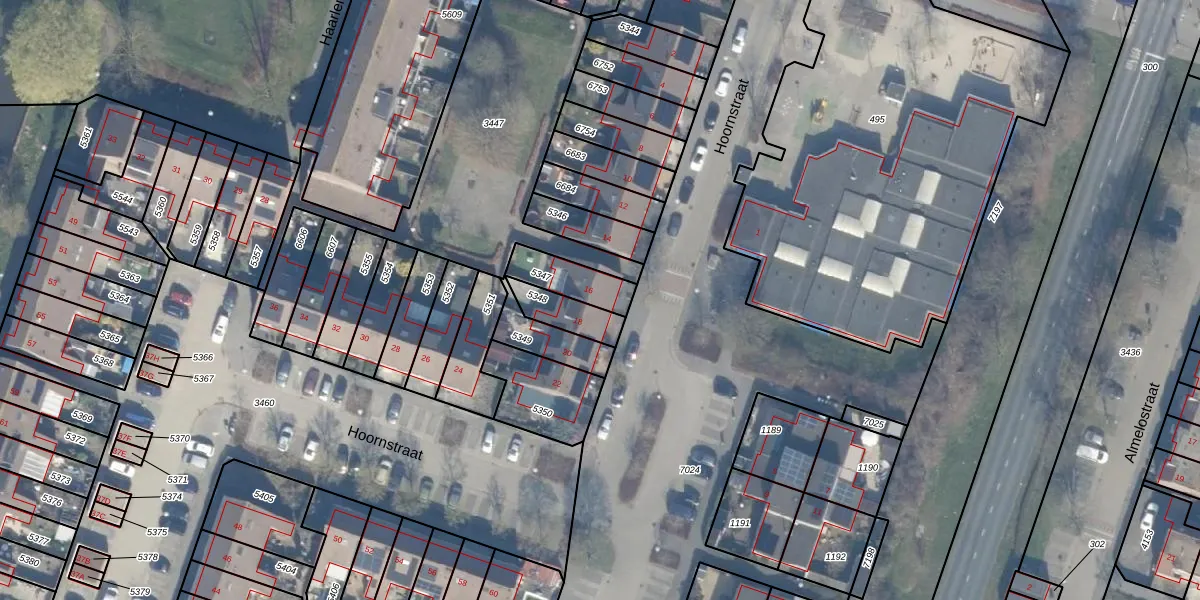 Hoornstraat 16 is gelegen op kadastraal perceel AMR04K5347. Deze kadastrale aanduiding is uniek en wordt gebruikt door het Kadaster om eigendomsrechten en andere zakelijke rechten vast te leggen. Het perceel maakt onderdeel uit van de kadastrale gemeente Almere.