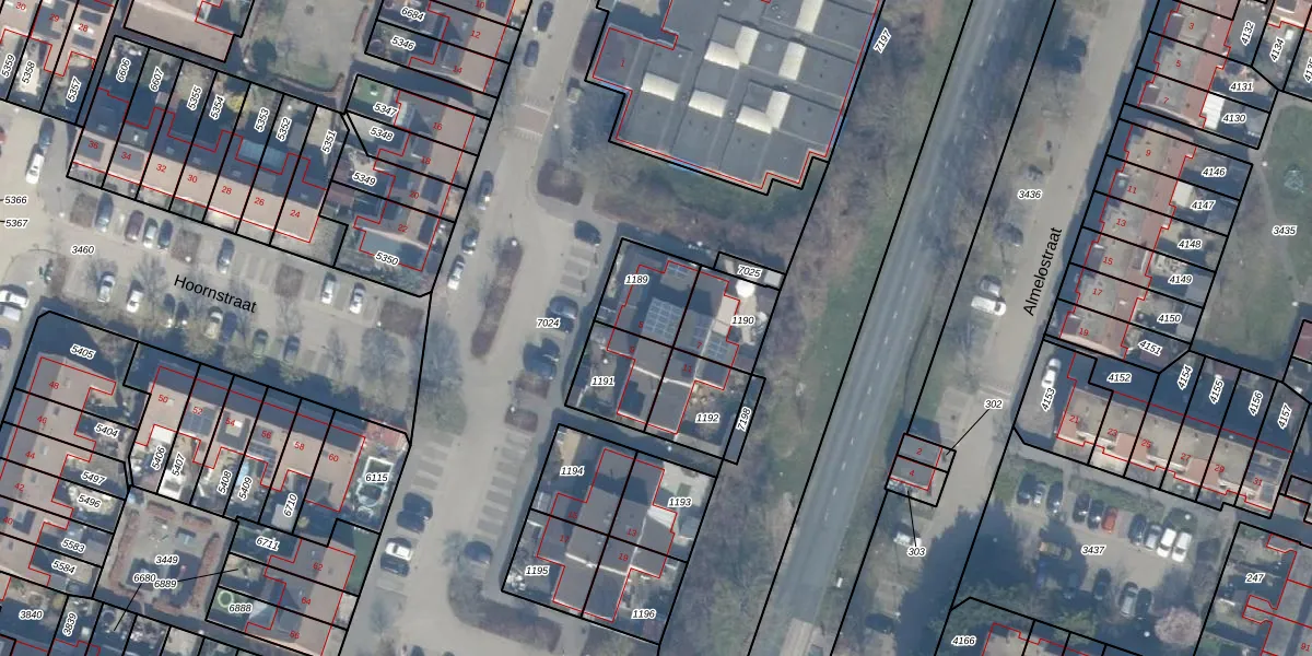 Het perceel waarop Hoornstraat 5 staat heeft een oppervlakte van 169 m². Dit is een middelgroot perceel. De perceeloppervlakte wordt geregistreerd door het Kadaster. Gedetailleerde informatie over de maten van dit perceel kunt u vinden in het rapport Kadastrale kaart met maatvoering van Hoornstraat 5.