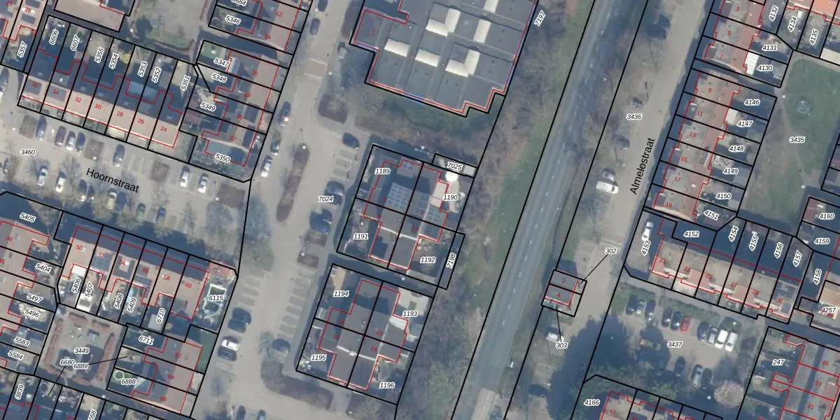 Het perceel waarop Hoornstraat 7 staat heeft een oppervlakte van 169 m². Dit is een middelgroot perceel. De perceeloppervlakte wordt geregistreerd door het Kadaster. Gedetailleerde informatie over de maten van dit perceel kunt u vinden in het rapport Kadastrale kaart met maatvoering van Hoornstraat 7.
