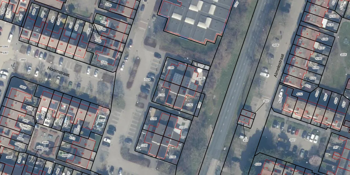 Het perceel waarop Hoornstraat 9 staat heeft een oppervlakte van 173 m². Dit is een middelgroot perceel. De perceeloppervlakte wordt geregistreerd door het Kadaster. Gedetailleerde informatie over de maten van dit perceel kunt u vinden in het rapport Kadastrale kaart met maatvoering van Hoornstraat 9.