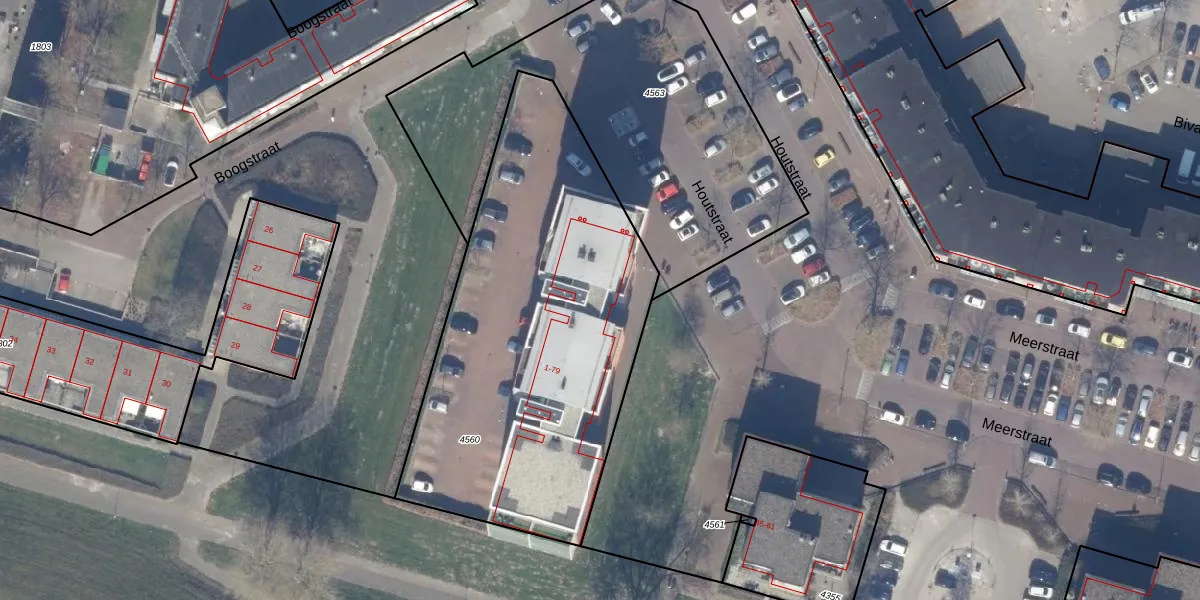 Houtstraat 1 is gelegen op kadastraal perceel AMR04H4560. Deze kadastrale aanduiding is uniek en wordt gebruikt door het Kadaster om eigendomsrechten en andere zakelijke rechten vast te leggen. Het perceel maakt onderdeel uit van de kadastrale gemeente Almere.