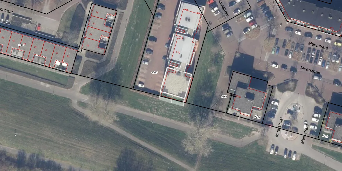 Houtstraat 53 is gelegen op kadastraal perceel AMR04H4560. Deze kadastrale aanduiding is uniek en wordt gebruikt door het Kadaster om eigendomsrechten en andere zakelijke rechten vast te leggen. Het perceel maakt onderdeel uit van de kadastrale gemeente Almere.