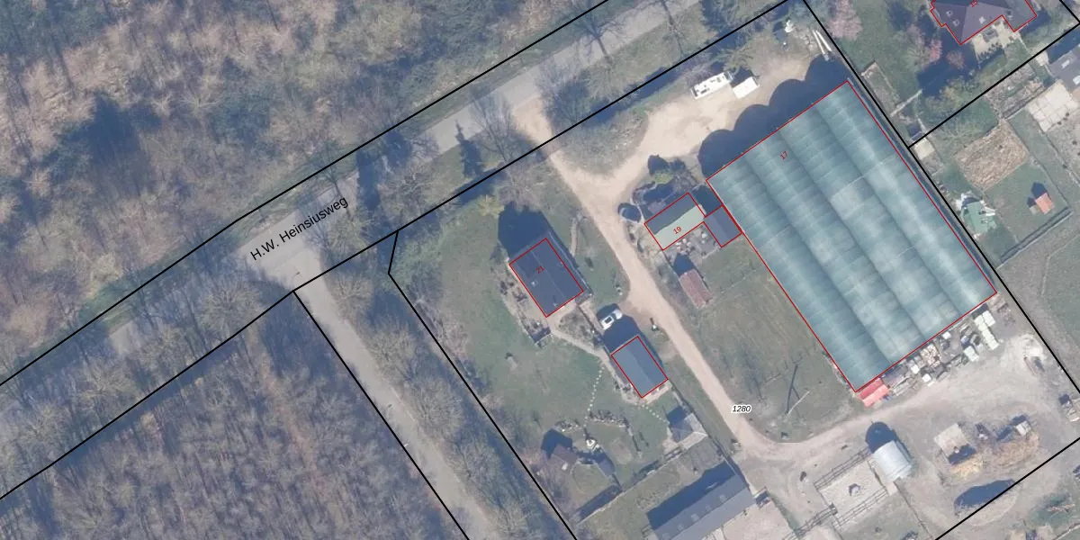 Het perceel waarop H.W. Heinsiusweg 21 staat heeft een oppervlakte van 9285 m². Dit is een zeer groot perceel. De perceeloppervlakte wordt geregistreerd door het Kadaster. Gedetailleerde informatie over de maten van dit perceel kunt u vinden in het rapport Kadastrale kaart met maatvoering van H.W. Heinsiusweg 21.