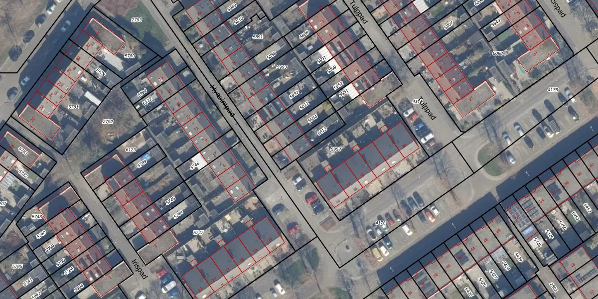 Gebruik de zoekbalk of klik op een perceel voor informatie over de adressen binnen dit perceel.