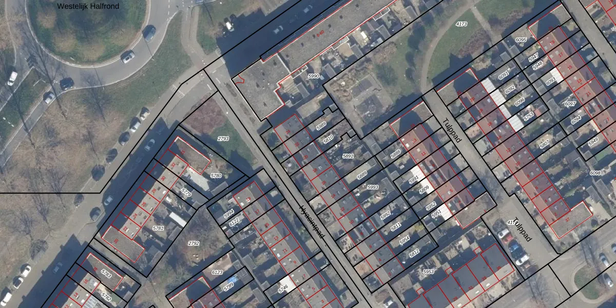 Gebruik de zoekbalk of klik op een perceel voor informatie over de adressen binnen dit perceel.