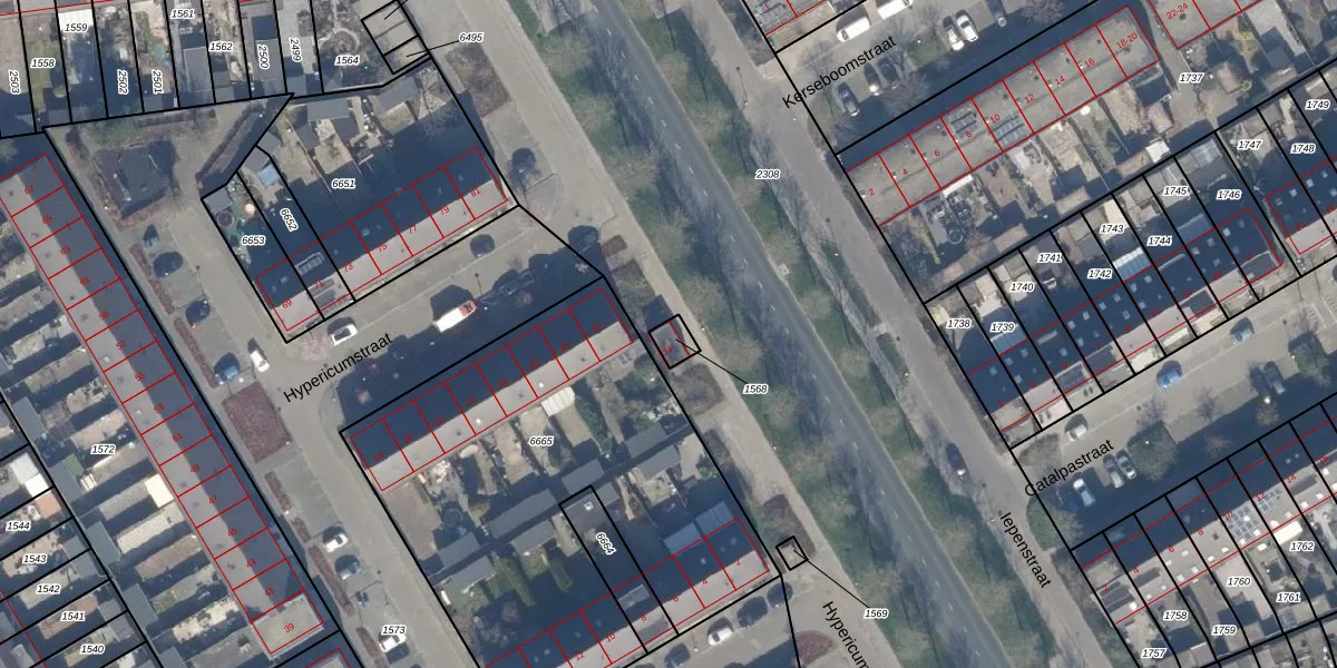 Gebruik de zoekbalk of klik op een perceel voor informatie over de adressen binnen dit perceel.