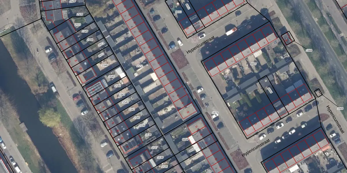Het perceel waarop Hypericumstraat 45 staat heeft een oppervlakte van 2352 m². Dit is een zeer groot perceel. De perceeloppervlakte wordt geregistreerd door het Kadaster. Gedetailleerde informatie over de maten van dit perceel kunt u vinden in het rapport Kadastrale kaart met maatvoering van Hypericumstraat 45.