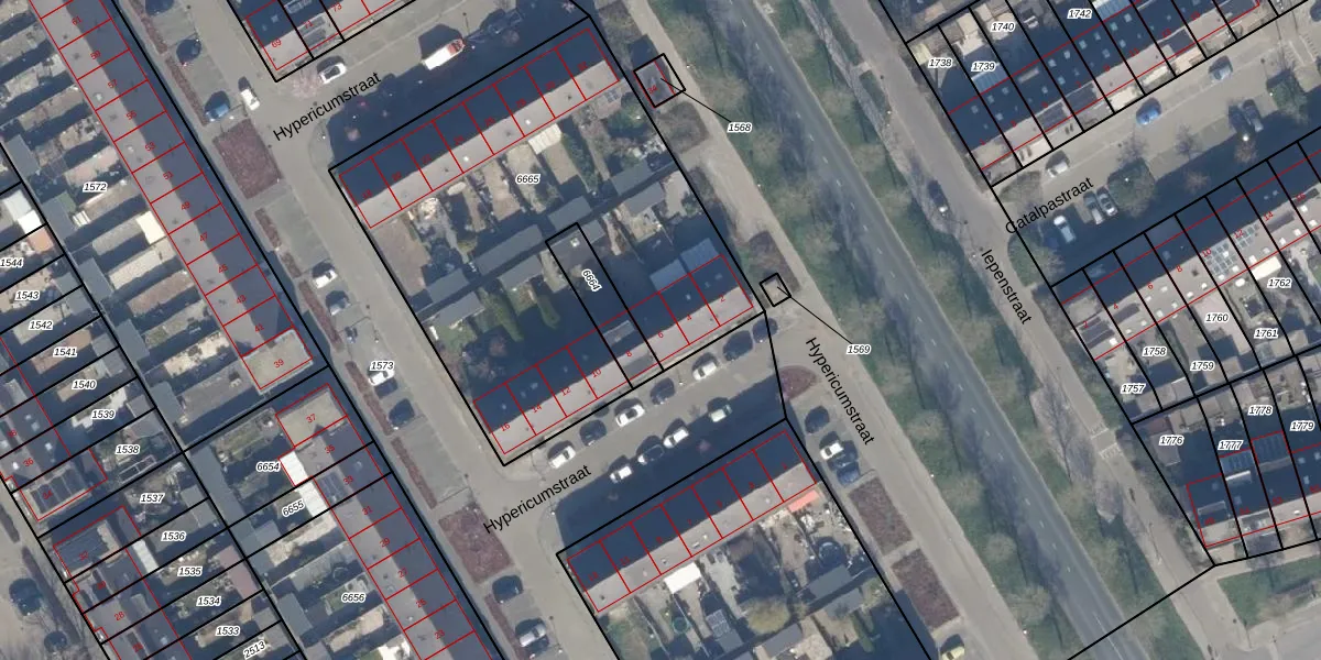 Het perceel waarop Hypericumstraat 6 staat heeft een oppervlakte van 2249 m². Dit is een zeer groot perceel. De perceeloppervlakte wordt geregistreerd door het Kadaster. Gedetailleerde informatie over de maten van dit perceel kunt u vinden in het rapport Kadastrale kaart met maatvoering van Hypericumstraat 6.