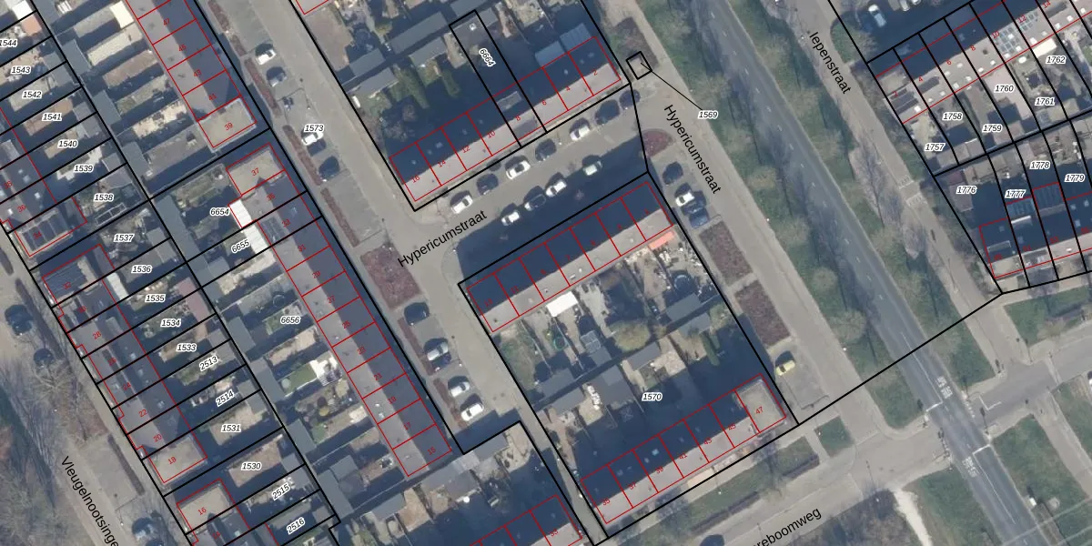 Het perceel waarop Hypericumstraat 9 staat heeft een oppervlakte van 2188 m². Dit is een zeer groot perceel. De perceeloppervlakte wordt geregistreerd door het Kadaster. Gedetailleerde informatie over de maten van dit perceel kunt u vinden in het rapport Kadastrale kaart met maatvoering van Hypericumstraat 9.