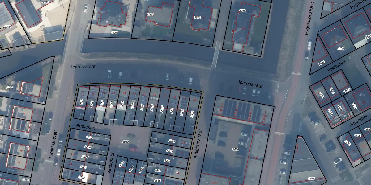 Icarusstraat 13 is gelegen op kadastraal perceel AMR04W2321. Deze kadastrale aanduiding is uniek en wordt gebruikt door het Kadaster om eigendomsrechten en andere zakelijke rechten vast te leggen. Het perceel maakt onderdeel uit van de kadastrale gemeente Almere.