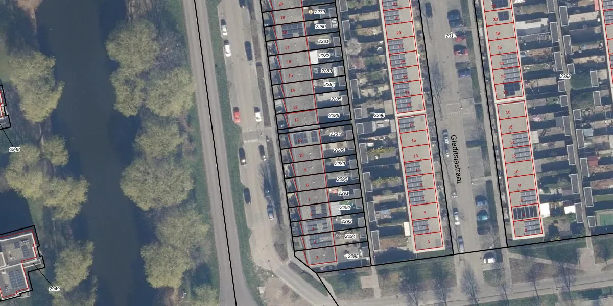 Het perceel waarop het adres ligt is AMR04-U-2288. De afkorting 'AMR04' staat voor kadastrale gemeente Almere. Het perceel is kleiner dan gemiddeld in Almere. Het perceel is 116 m² groot, terwijl het gemiddelde ligt op 3327,62 m². Het kleinste perceel in de kadastrale gemeente is 0 m² groot. De grootste perceeloppervlakte is 32,12 km². Op het perceel bevinden zich geen andere adressen. In de Basisregistratie Kadaster (BRK) werden de grenzen van het perceel geregistreerd op 20-03-2001.