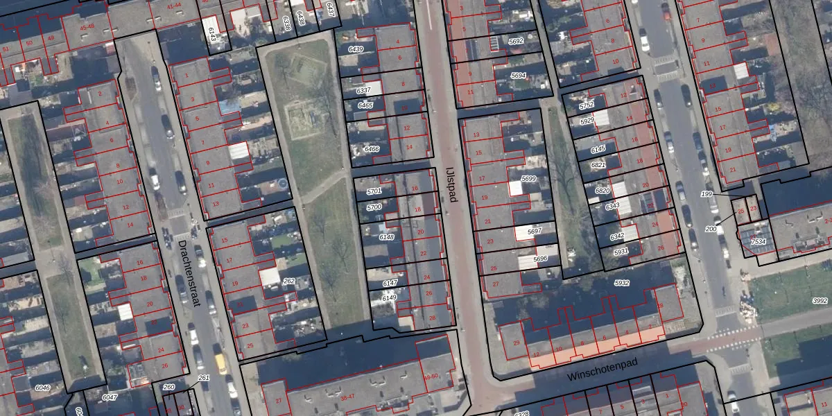 Het perceel waarop IJlstpad 18 staat heeft een oppervlakte van 107 m². Dit is een middelgroot perceel. De perceeloppervlakte wordt geregistreerd door het Kadaster. Gedetailleerde informatie over de maten van dit perceel kunt u vinden in het rapport Kadastrale kaart met maatvoering van IJlstpad 18.