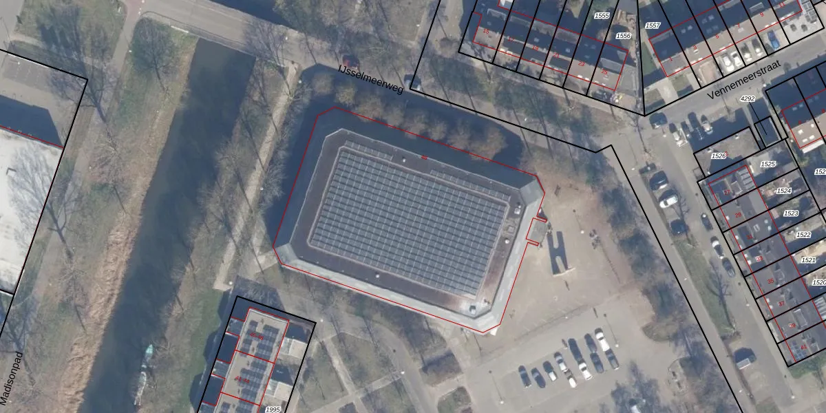 Het perceel waarop IJsselmeerweg 48 staat heeft een oppervlakte van 10,0 ha. Dit is een zeer groot perceel. De perceeloppervlakte wordt geregistreerd door het Kadaster. Gedetailleerde informatie over de maten van dit perceel kunt u vinden in het rapport Kadastrale kaart met maatvoering van IJsselmeerweg 48.