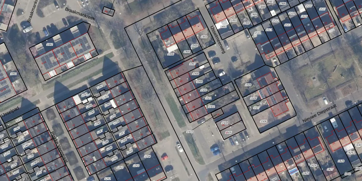 Het perceel waarop IJsselmeerweg 65 staat heeft een oppervlakte van 122 m². Dit is een middelgroot perceel. De perceeloppervlakte wordt geregistreerd door het Kadaster. Gedetailleerde informatie over de maten van dit perceel kunt u vinden in het rapport Kadastrale kaart met maatvoering van IJsselmeerweg 65.
