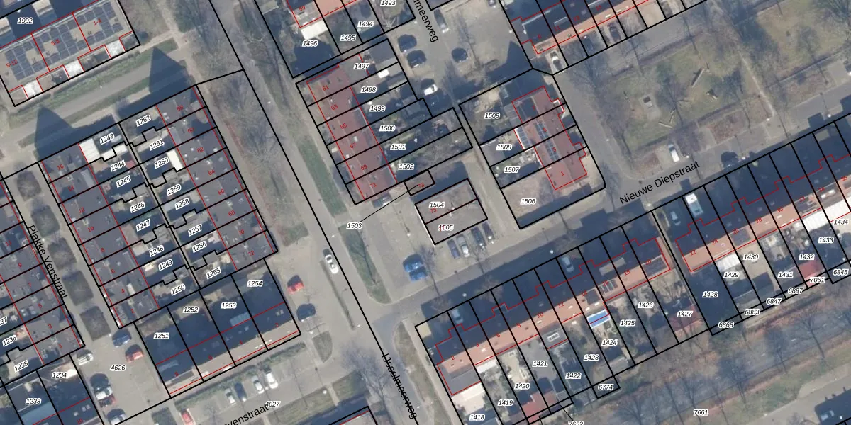 Het adres ligt op het perceel AMR04-O-1504, dat zich in de kadastrale gemeente Almere bevindt. De gemiddelde perceelgrootte in Almere is 3327,75 m². Dit perceel is kleiner: de perceeloppervlakte bedraagt 73 m². Het kleinste perceel in de kadastrale gemeente is 0 m² groot. De grootste perceeloppervlakte is 32,12 km². Er zijn geen andere adressen aanwezig op het perceel. De huidige grenzen van het perceel zijn digitaal in de Basisregistratie Kadaster (BRK) geregistreerd op 18-07-2008.