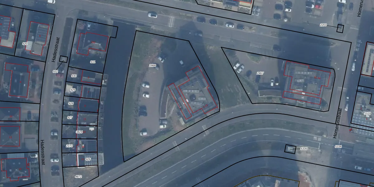Het adres is gelegen op perceel 2468 in de sectie W en de kadastrale gemeente Almere. De kadastrale aanduiding is aldus AMR04-W-2468. Het perceel is kleiner dan gemiddeld in Almere. Het perceel is 2385 m² groot, terwijl het gemiddelde ligt op 3327,75 m². Het grootste perceel in de kadastrale gemeente is 32,12 km². Het kleinste perceel heeft een oppervlakte van 0 m². Op het perceel liggen in totaal 22 adressen. In de Basisregistratie Kadaster (BRK) werden de grenzen van het perceel geregistreerd op 10-05-2019.