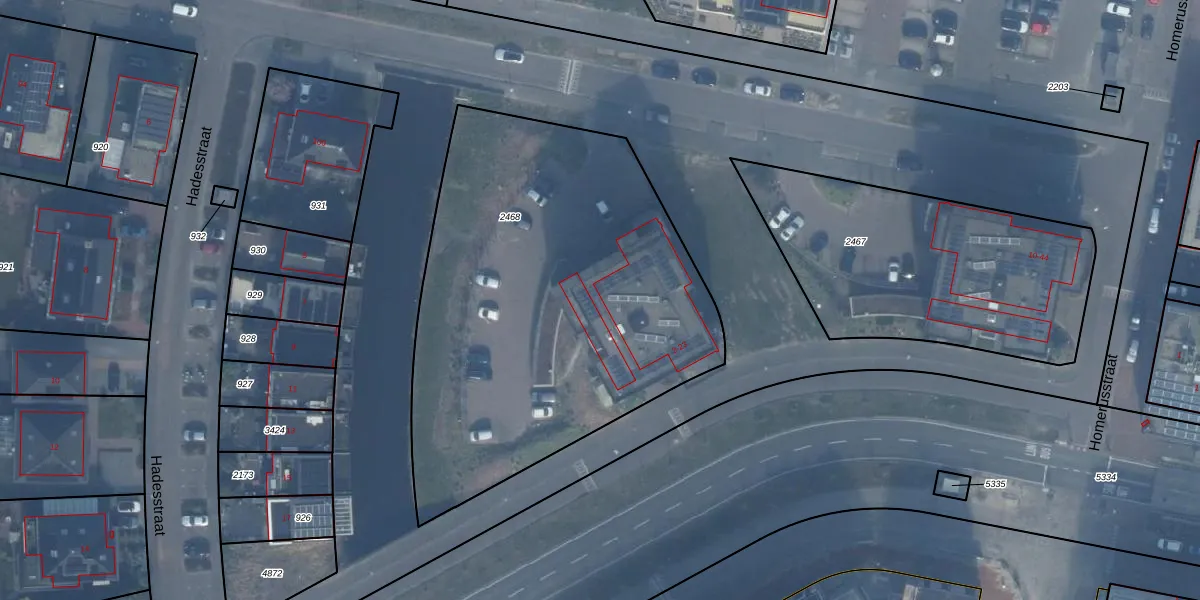 Het adres is gelegen op perceel 2468 in de sectie W en de kadastrale gemeente Almere. De kadastrale aanduiding is aldus AMR04-W-2468. Het perceel is kleiner dan gemiddeld in Almere. Het perceel is 2385 m² groot, terwijl het gemiddelde ligt op 3328,15 m². Het grootste perceel in de kadastrale gemeente is 32,12 km². Het kleinste perceel heeft een oppervlakte van 0 m². Er zijn 22 adressen aanwezig op het perceel. In de Basisregistratie Kadaster (BRK) werden de grenzen van het perceel geregistreerd op 10-05-2019.