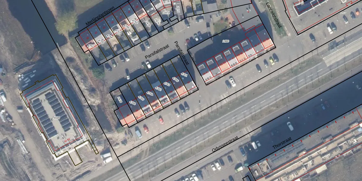 Het adres is gelegen op perceel 4765 in de sectie W en de kadastrale gemeente Almere. De kadastrale aanduiding is aldus AMR04-W-4765. Het perceel is kleiner dan gemiddeld in Almere. Het perceel is 118 m² groot, terwijl het gemiddelde ligt op 3328,15 m². Het kleinste perceel in de kadastrale gemeente is 0 m² groot. De grootste perceeloppervlakte is 32,12 km². Dit is het enige adres dat aanwezig is op het perceel. In de Basisregistratie Kadaster (BRK) werden de grenzen van het perceel geregistreerd op 26-08-2020.