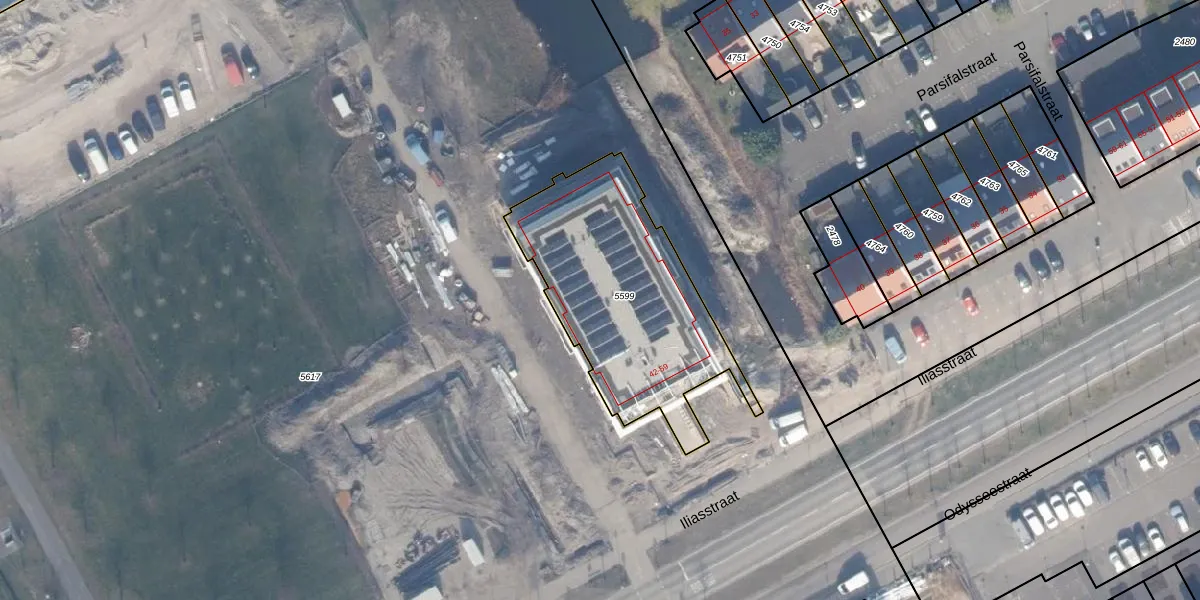 Het perceel waarop Iliasstraat 49 staat heeft een oppervlakte van 953 m². Dit is een groot perceel. De perceeloppervlakte wordt geregistreerd door het Kadaster. Gedetailleerde informatie over de maten van dit perceel kunt u vinden in het rapport Kadastrale kaart met maatvoering van Iliasstraat 49.