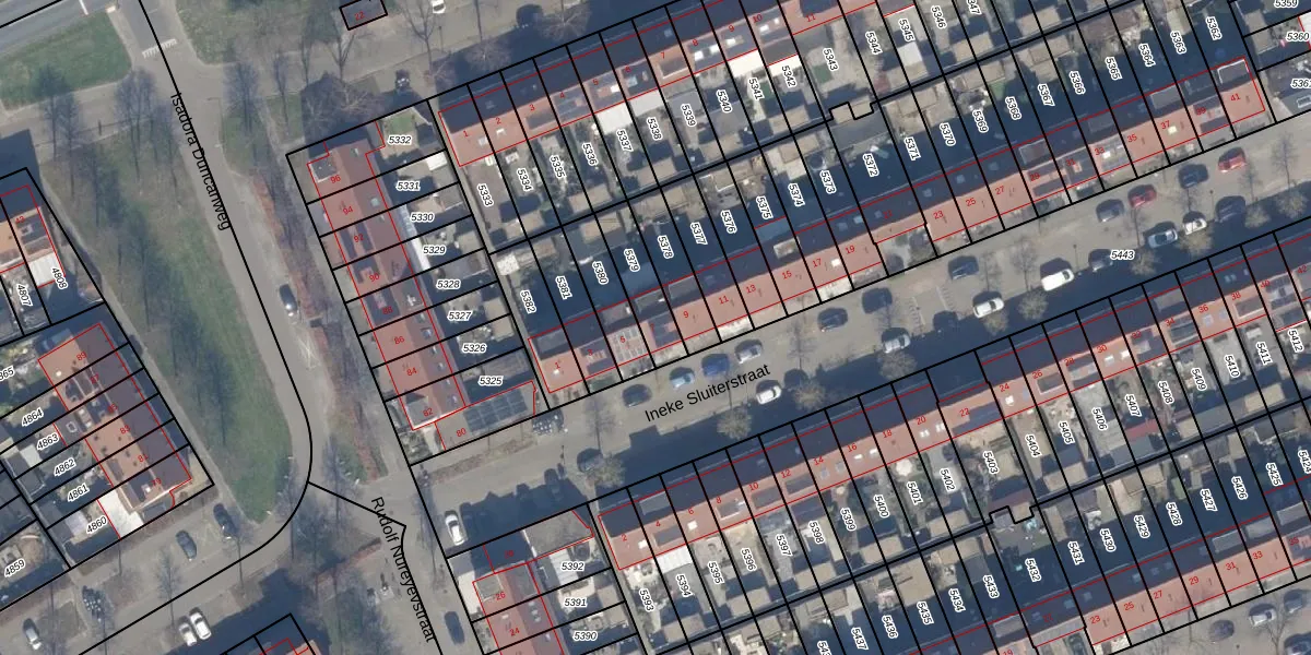 Ineke Sluiterstraat 7 is gelegen op kadastraal perceel AMR04U5379. Deze kadastrale aanduiding is uniek en wordt gebruikt door het Kadaster om eigendomsrechten en andere zakelijke rechten vast te leggen. Het perceel maakt onderdeel uit van de kadastrale gemeente Almere.