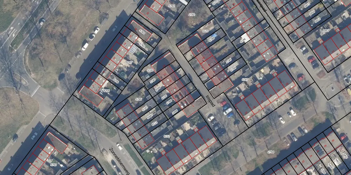 Gebruik de zoekbalk of klik op een perceel voor informatie over de adressen binnen dit perceel.
