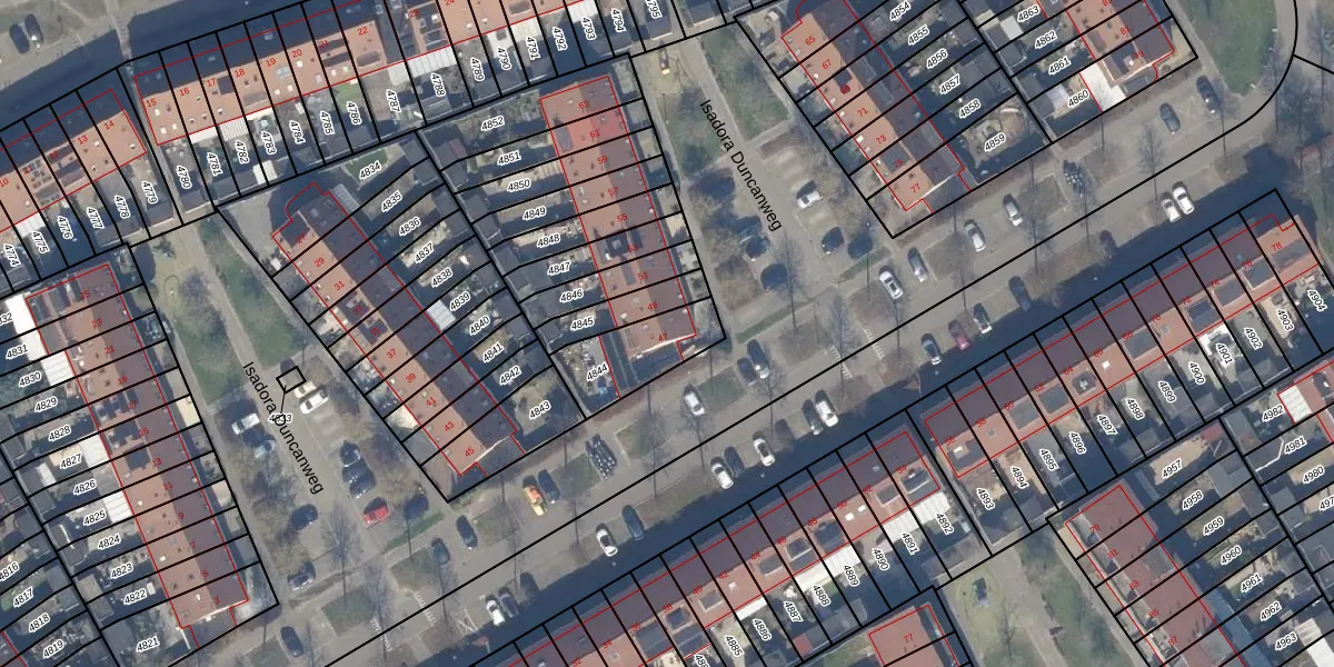 Isadora Duncanweg 47 is gelegen op kadastraal perceel AMR04U4844. Deze kadastrale aanduiding is uniek en wordt gebruikt door het Kadaster om eigendomsrechten en andere zakelijke rechten vast te leggen. Het perceel maakt onderdeel uit van de kadastrale gemeente Almere.