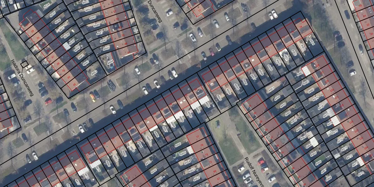 Isadora Duncanweg 52 is gelegen op kadastraal perceel AMR04U4891. Deze kadastrale aanduiding is uniek en wordt gebruikt door het Kadaster om eigendomsrechten en andere zakelijke rechten vast te leggen. Het perceel maakt onderdeel uit van de kadastrale gemeente Almere.