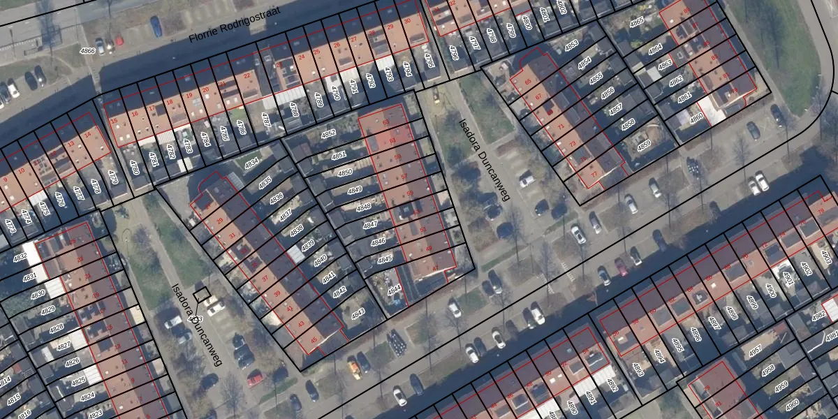 Isadora Duncanweg 53 is gelegen op kadastraal perceel AMR04U4847. Deze kadastrale aanduiding is uniek en wordt gebruikt door het Kadaster om eigendomsrechten en andere zakelijke rechten vast te leggen. Het perceel maakt onderdeel uit van de kadastrale gemeente Almere.