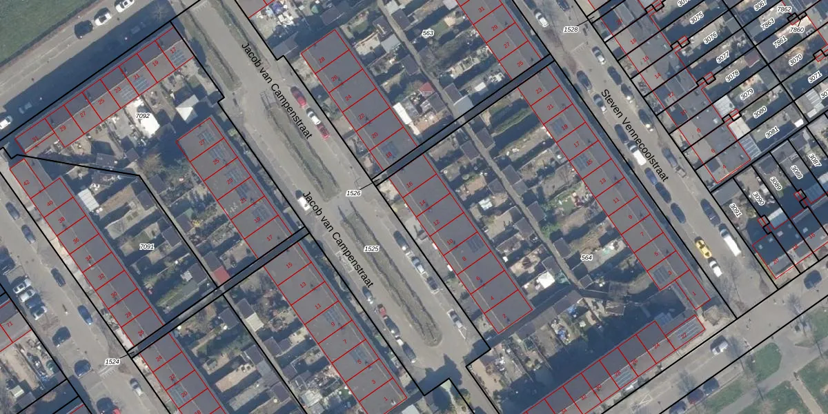 Het perceel waarop Jacob van Campenstraat 14 staat heeft een oppervlakte van 4249 m². Dit is een zeer groot perceel. De perceeloppervlakte wordt geregistreerd door het Kadaster. Gedetailleerde informatie over de maten van dit perceel kunt u vinden in het rapport Kadastrale kaart met maatvoering van Jacob van Campenstraat 14.