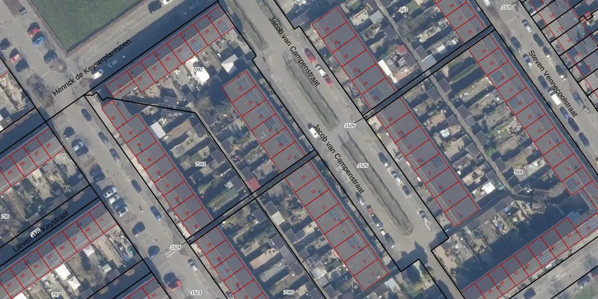 Jacob van Campenstraat 17 is gelegen op kadastraal perceel AMR04P7092. Deze kadastrale aanduiding is uniek en wordt gebruikt door het Kadaster om eigendomsrechten en andere zakelijke rechten vast te leggen. Het perceel maakt onderdeel uit van de kadastrale gemeente Almere.
