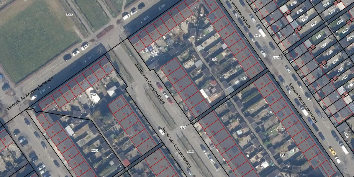 Het perceel waarop Jacob van Campenstraat 24 staat heeft een oppervlakte van 3182 m². Dit is een zeer groot perceel. De perceeloppervlakte wordt geregistreerd door het Kadaster. Gedetailleerde informatie over de maten van dit perceel kunt u vinden in het rapport Kadastrale kaart met maatvoering van Jacob van Campenstraat 24.