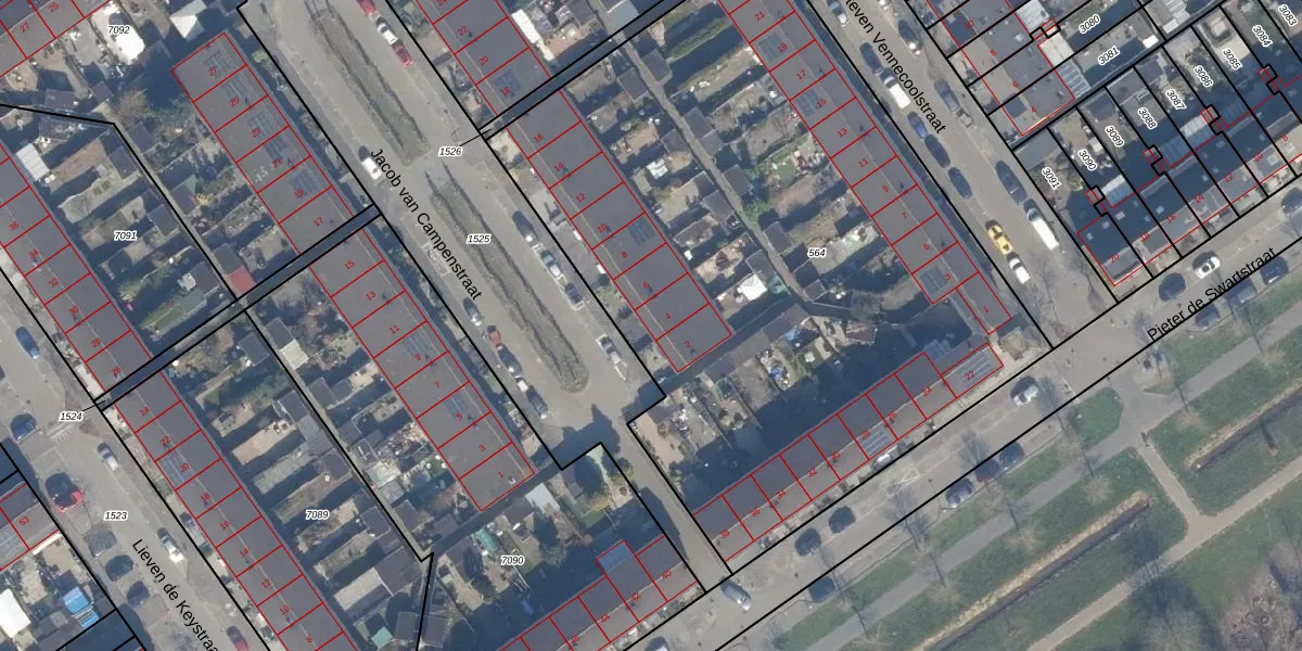 Het perceel waarop Jacob van Campenstraat 4 staat heeft een oppervlakte van 4249 m². Dit is een zeer groot perceel. De perceeloppervlakte wordt geregistreerd door het Kadaster. Gedetailleerde informatie over de maten van dit perceel kunt u vinden in het rapport Kadastrale kaart met maatvoering van Jacob van Campenstraat 4.
