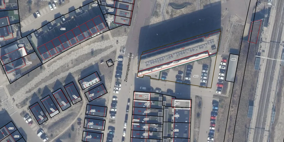 Het adres ligt op het perceel AMR04-W-5609, dat zich in de kadastrale gemeente Almere bevindt. Het perceel is 1056 m² groot. Dat is kleiner dan de gemiddelde perceeloppervlakte in Almere, dat op 3328,15 m² ligt. Het grootste perceel in de kadastrale gemeente is 32,12 km². Het kleinste perceel heeft een oppervlakte van 0 m². Er zijn 40 adressen aanwezig op het perceel. De huidige grenzen van het perceel zijn digitaal in de Basisregistratie Kadaster (BRK) geregistreerd op 16-11-2023.