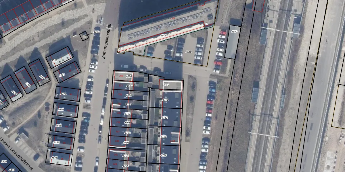 Het perceel waarop het adres ligt is AMR04-W-4710. De afkorting 'AMR04' staat voor kadastrale gemeente Almere. Het perceel is 133 m² groot. Dat is kleiner dan de gemiddelde perceeloppervlakte in Almere, dat op 3328,15 m² ligt. Het kleinste perceel in de kadastrale gemeente is 0 m² groot. De grootste perceeloppervlakte is 32,12 km². Er zijn geen andere adressen aanwezig op het perceel. In de Basisregistratie Kadaster (BRK) werden de grenzen van het perceel geregistreerd op 02-06-2020.