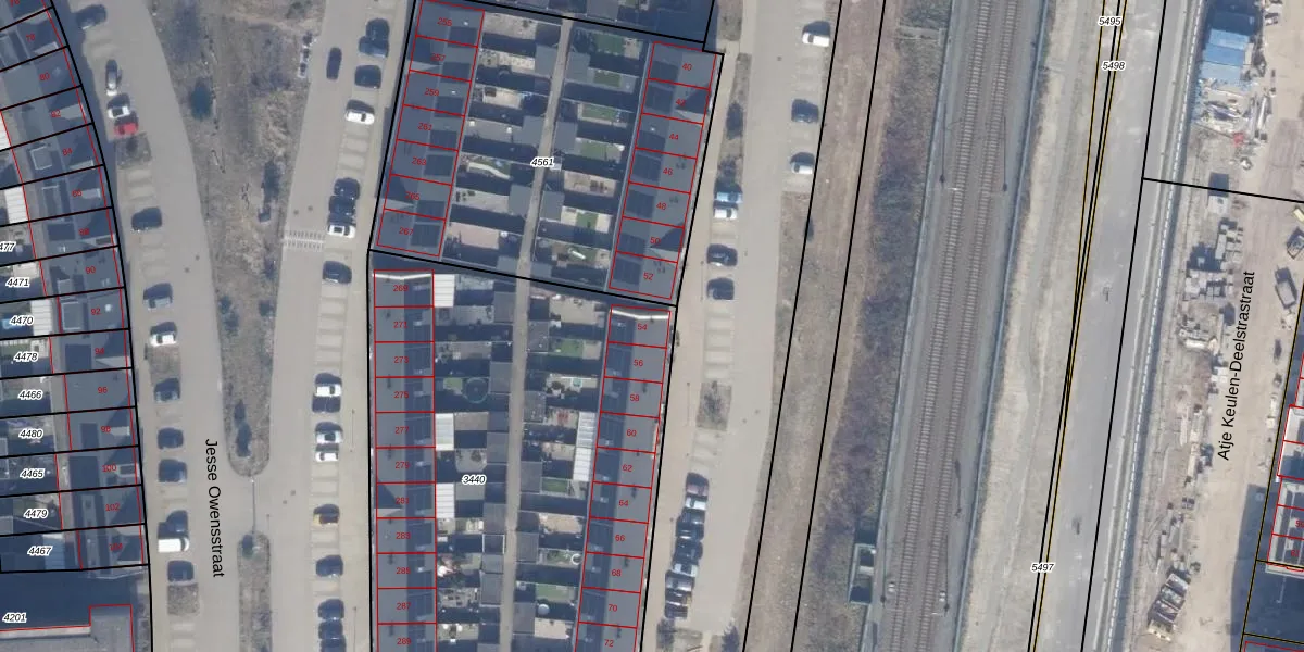 Het adres ligt op het perceel AMR04-W-3440, dat zich in de kadastrale gemeente Almere bevindt. De gemiddelde perceelgrootte in Almere is 3328,15 m². Dit perceel is kleiner: de perceeloppervlakte bedraagt 2830 m². Het grootste perceel in de kadastrale gemeente is 32,12 km². Het kleinste perceel heeft een oppervlakte van 0 m². Op het perceel zijn 23 adressen aanwezig. De huidige grenzen van het perceel zijn digitaal in de Basisregistratie Kadaster (BRK) geregistreerd op 07-01-2022.
