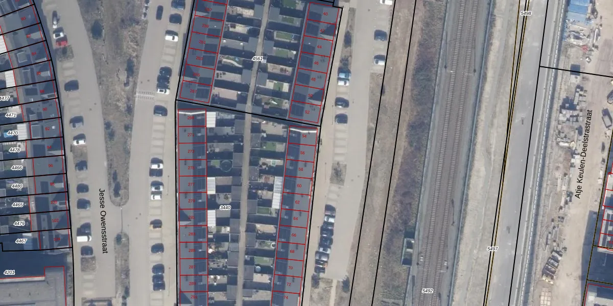 Het adres ligt op het perceel AMR04-W-3440, dat zich in de kadastrale gemeente Almere bevindt. De gemiddelde perceelgrootte in Almere is 3328,15 m². Dit perceel is kleiner: de perceeloppervlakte bedraagt 2830 m². Het grootste perceel in de kadastrale gemeente is 32,12 km². Het kleinste perceel heeft een oppervlakte van 0 m². Op het perceel zijn 23 adressen aanwezig. De laatste wijziging in het de Basisregistratie Kadaster (BRK) was op 07-01-2022.