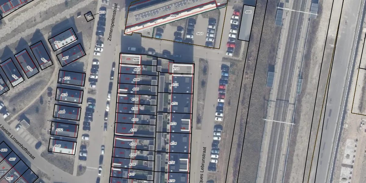 Het perceel waarop het adres ligt is AMR04-W-4711. De afkorting 'AMR04' staat voor kadastrale gemeente Almere. Het perceel is 212 m² groot. Dat is kleiner dan de gemiddelde perceeloppervlakte in Almere, dat op 3328,15 m² ligt. Het kleinste perceel in de kadastrale gemeente is 0 m² groot. De grootste perceeloppervlakte is 32,12 km². Op het perceel zijn 3 adressen aanwezig. In de Basisregistratie Kadaster (BRK) werden de grenzen van het perceel geregistreerd op 02-06-2020.