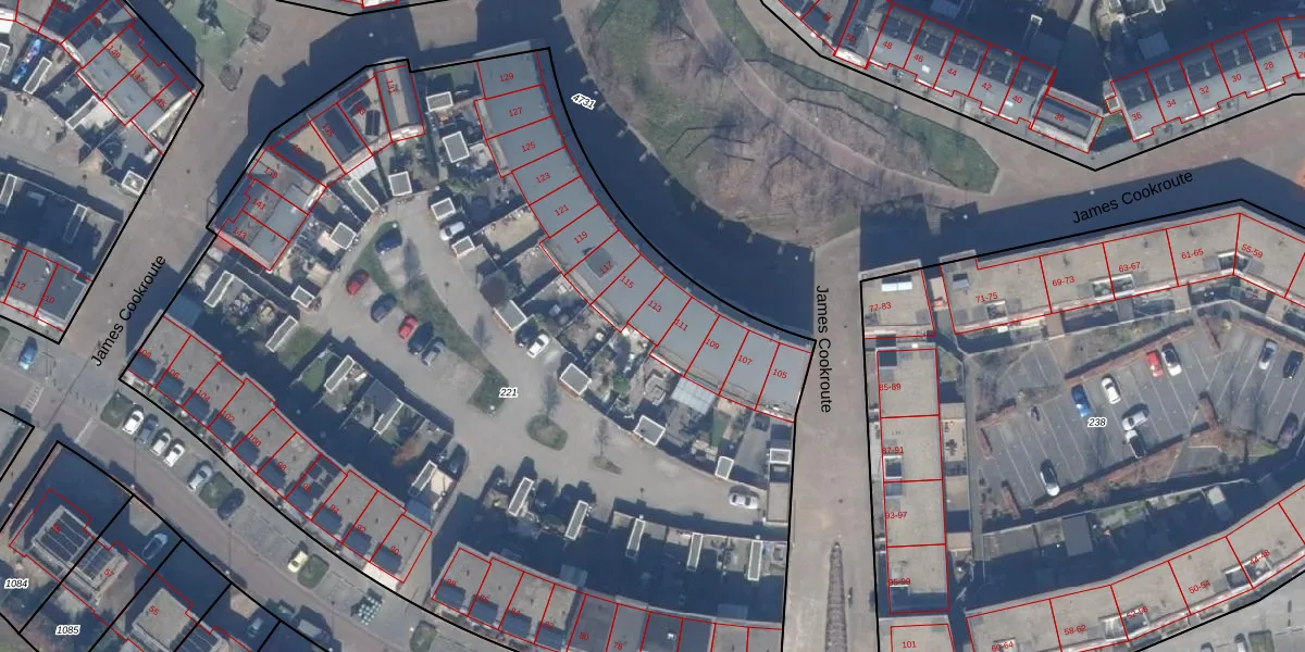 James Cookroute 113 is gelegen op kadastraal perceel AMR04W221. Deze kadastrale aanduiding is uniek en wordt gebruikt door het Kadaster om eigendomsrechten en andere zakelijke rechten vast te leggen. Het perceel maakt onderdeel uit van de kadastrale gemeente Almere.
