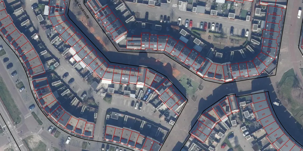 James Cookroute 155 is gelegen op kadastraal perceel AMR04W220. Deze kadastrale aanduiding is uniek en wordt gebruikt door het Kadaster om eigendomsrechten en andere zakelijke rechten vast te leggen. Het perceel maakt onderdeel uit van de kadastrale gemeente Almere.