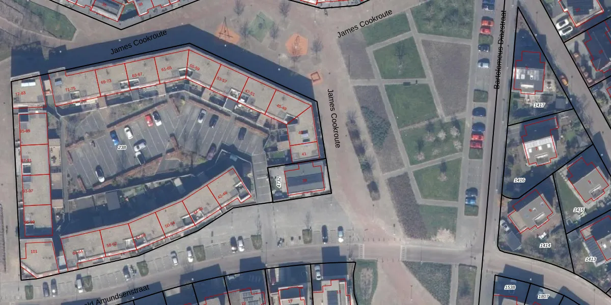 James Cookroute 41 is gelegen op kadastraal perceel AMR04W238. Deze kadastrale aanduiding is uniek en wordt gebruikt door het Kadaster om eigendomsrechten en andere zakelijke rechten vast te leggen. Het perceel maakt onderdeel uit van de kadastrale gemeente Almere.