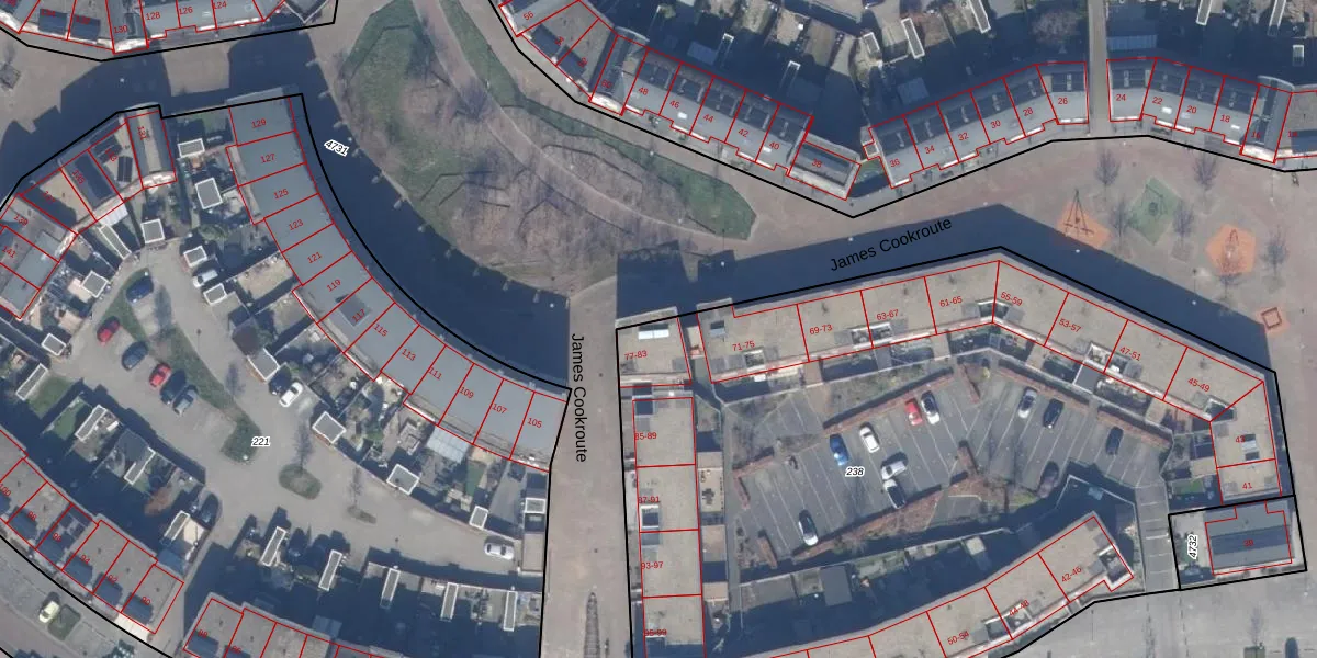 Het perceel waarop James Cookroute 79 staat heeft een oppervlakte van 5440 m². Dit is een zeer groot perceel. De perceeloppervlakte wordt geregistreerd door het Kadaster. Gedetailleerde informatie over de maten van dit perceel kunt u vinden in het rapport Kadastrale kaart met maatvoering van James Cookroute 79.