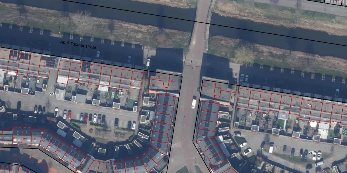 Het adres is gelegen op perceel 216 in de sectie W en de kadastrale gemeente Almere. De kadastrale aanduiding is aldus AMR04-W-216. Het perceel is met 7618 m² relatief groot. Het gemiddelde ligt in de kadastrale gemeente Almere op 3328,46 m². De grootste perceeloppervlakte in de kadastrale gemeente is 32,12 km². De kleinste oppervlakte bedraagt 0 m². Op het perceel liggen in totaal 55 adressen. De huidige grenzen van het perceel zijn digitaal in de Basisregistratie Kadaster (BRK) geregistreerd op 27-06-2012.