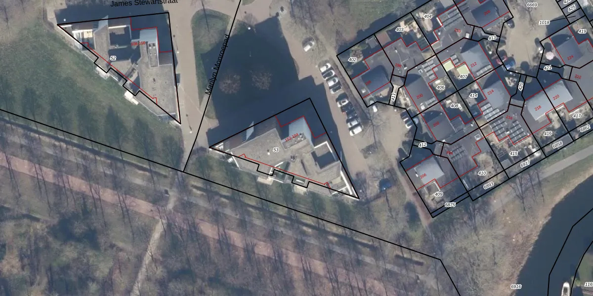 Het perceel waarop James Stewartstraat 172 staat heeft een oppervlakte van 739 m². Dit is een groot perceel. De perceeloppervlakte wordt geregistreerd door het Kadaster. Gedetailleerde informatie over de maten van dit perceel kunt u vinden in het rapport Kadastrale kaart met maatvoering van James Stewartstraat 172.