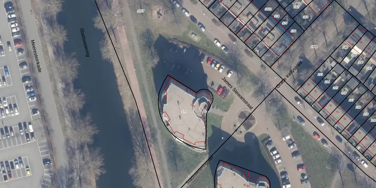 James Stewartstraat 2 is gelegen op kadastraal perceel AMR04U171. Deze kadastrale aanduiding is uniek en wordt gebruikt door het Kadaster om eigendomsrechten en andere zakelijke rechten vast te leggen. Het perceel maakt onderdeel uit van de kadastrale gemeente Almere.