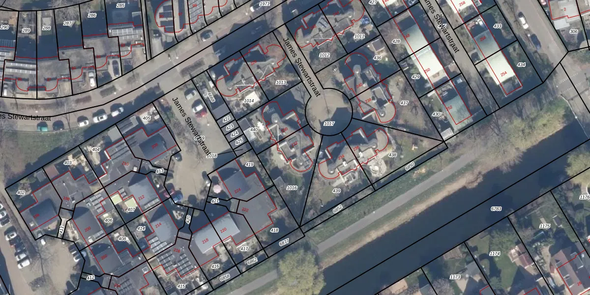 Het perceel waarop James Stewartstraat 232 staat heeft een oppervlakte van 381 m². Dit is een groot perceel. De perceeloppervlakte wordt geregistreerd door het Kadaster. Gedetailleerde informatie over de maten van dit perceel kunt u vinden in het rapport Kadastrale kaart met maatvoering van James Stewartstraat 232.