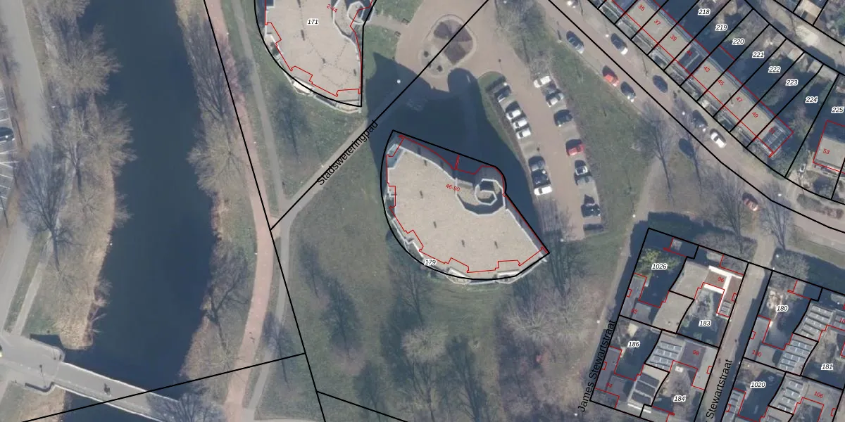 Het perceel waarop James Stewartstraat 84 staat heeft een oppervlakte van 906 m². Dit is een groot perceel. De perceeloppervlakte wordt geregistreerd door het Kadaster. Gedetailleerde informatie over de maten van dit perceel kunt u vinden in het rapport Kadastrale kaart met maatvoering van James Stewartstraat 84.