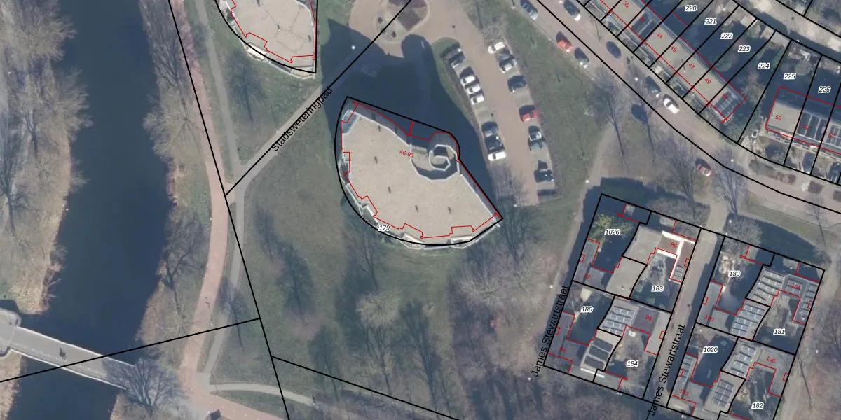 Het perceel waarop James Stewartstraat 88 staat heeft een oppervlakte van 906 m². Dit is een groot perceel. De perceeloppervlakte wordt geregistreerd door het Kadaster. Gedetailleerde informatie over de maten van dit perceel kunt u vinden in het rapport Kadastrale kaart met maatvoering van James Stewartstraat 88.