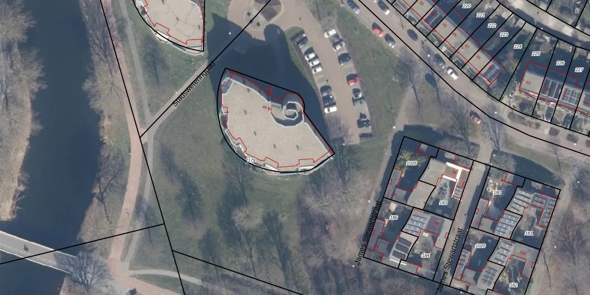 Het perceel waarop James Stewartstraat 90 staat heeft een oppervlakte van 906 m². Dit is een groot perceel. De perceeloppervlakte wordt geregistreerd door het Kadaster. Gedetailleerde informatie over de maten van dit perceel kunt u vinden in het rapport Kadastrale kaart met maatvoering van James Stewartstraat 90.