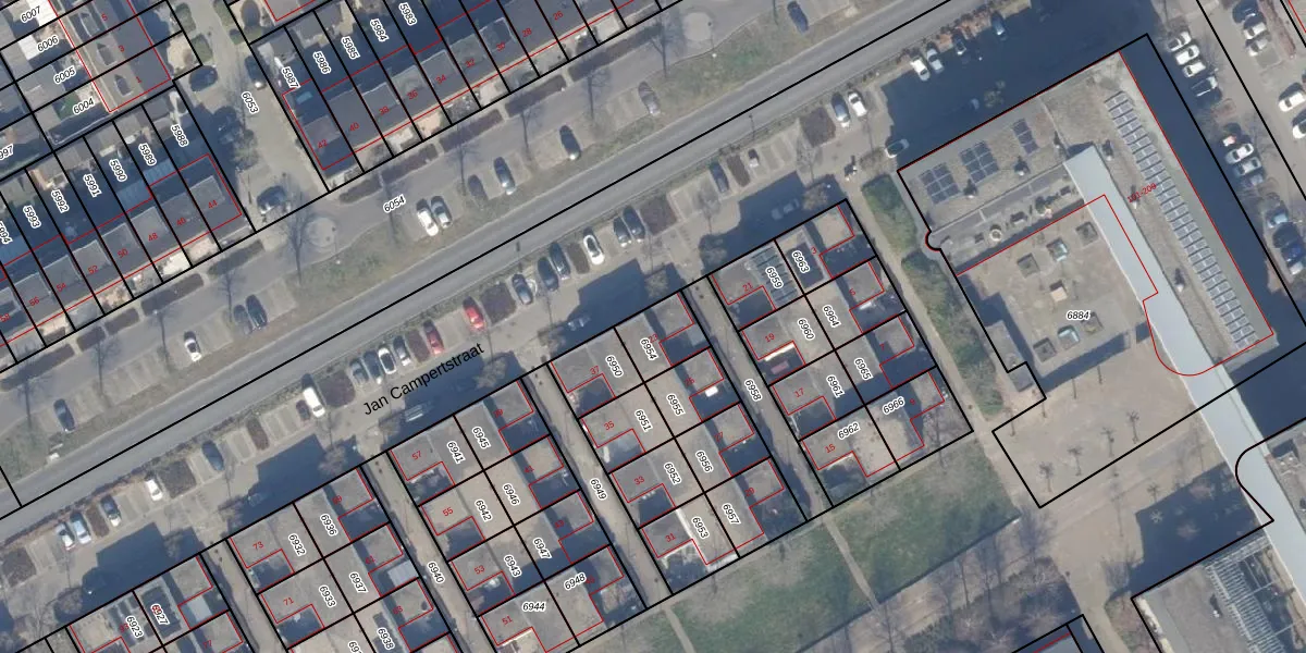 Jan Campertstraat 23 is gelegen op kadastraal perceel AMR04Q6954. Deze kadastrale aanduiding is uniek en wordt gebruikt door het Kadaster om eigendomsrechten en andere zakelijke rechten vast te leggen. Het perceel maakt onderdeel uit van de kadastrale gemeente Almere.